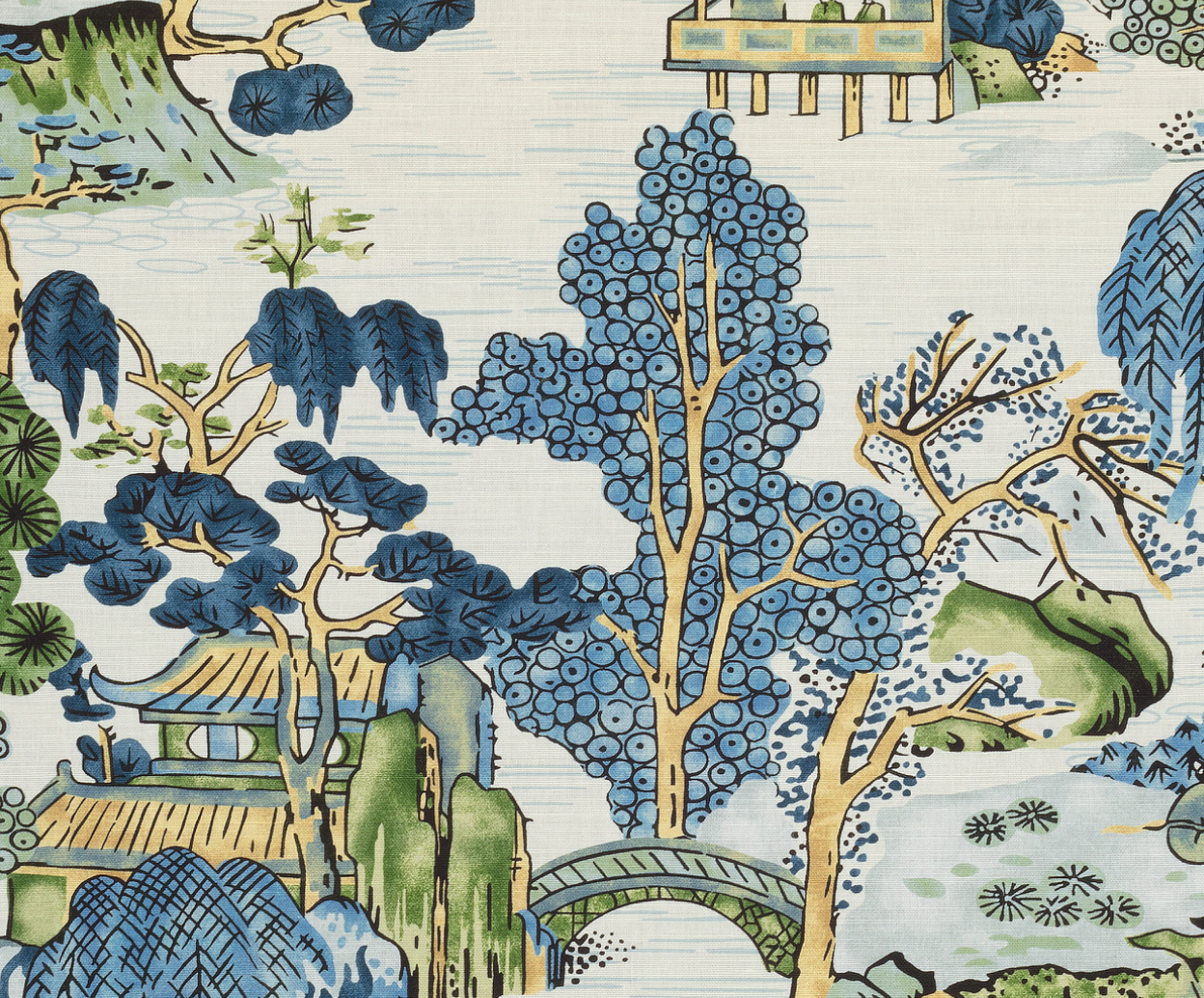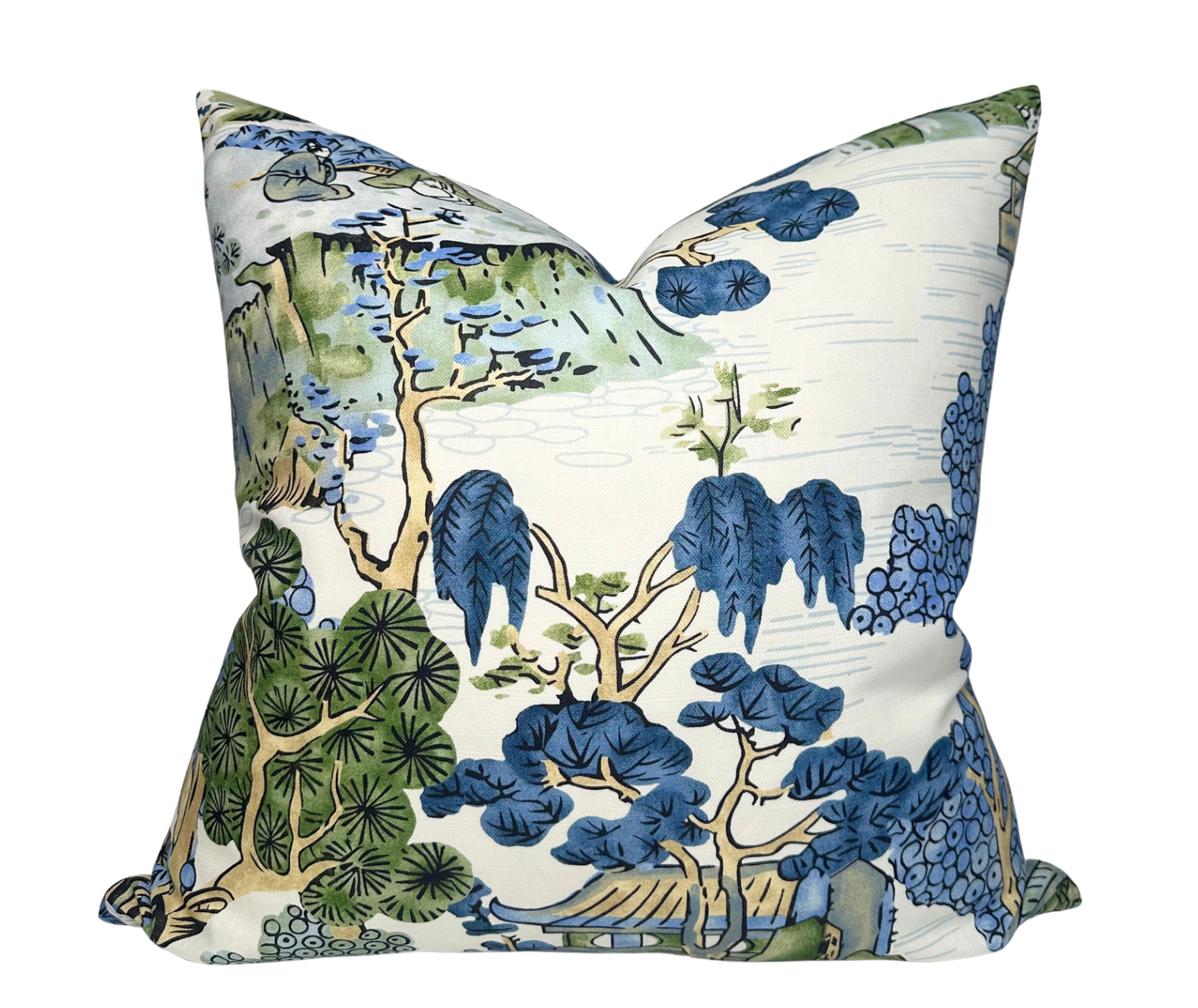 Asian Scenic Pillow Cover in Blue and Green, Thibaut Pillows